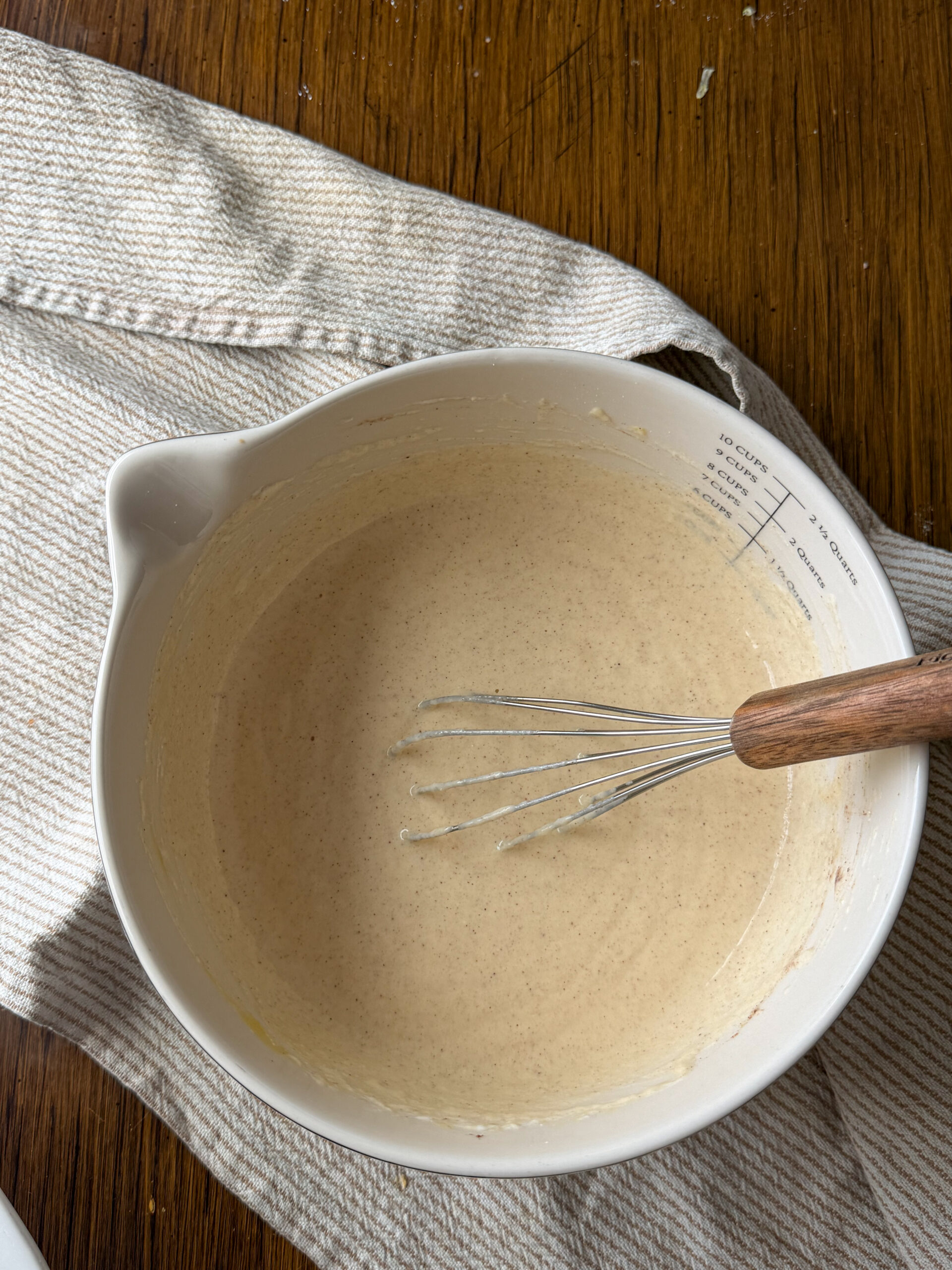 - Step 3: Pour the mixture into the prepared baking dish. Top with cinnamon sugar mixture and swirl into the batter.