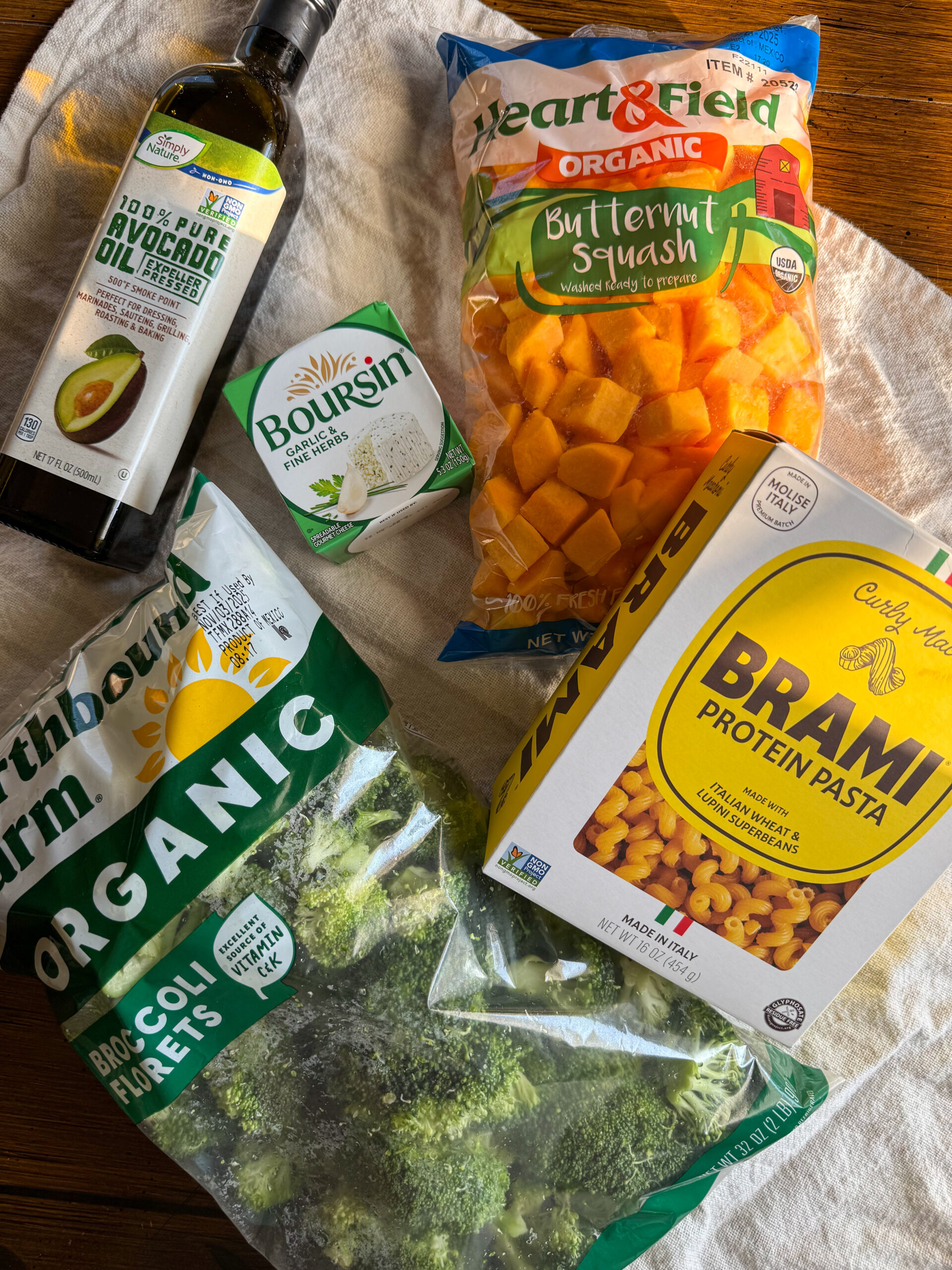 Here's all you need to make this butternut squash Boursin pasta with broccoli: