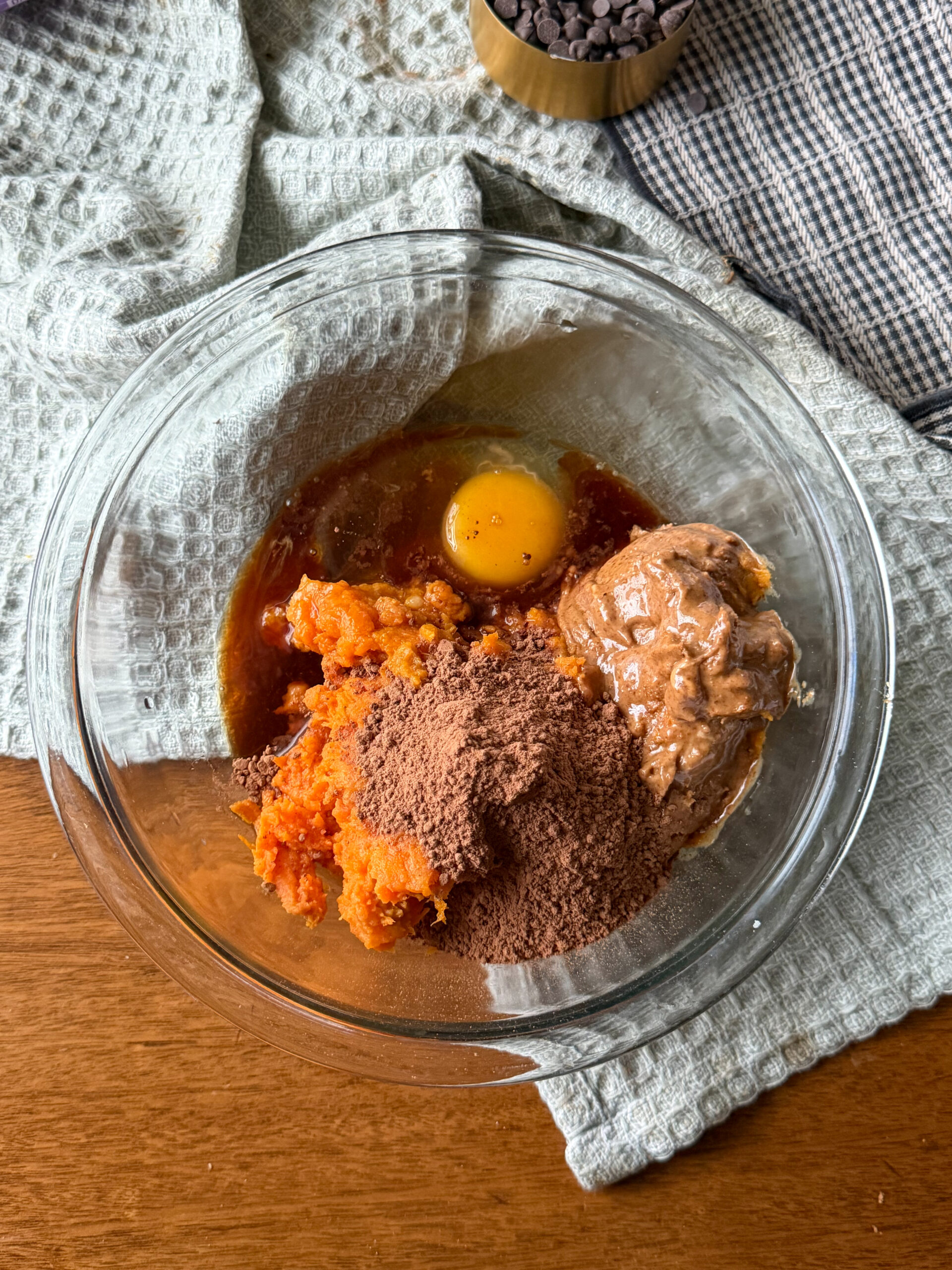 - sweet potato – mashed sweet potato adds natural sweetness, fiber, and vitamin A while helping create a soft, moist brownie texture