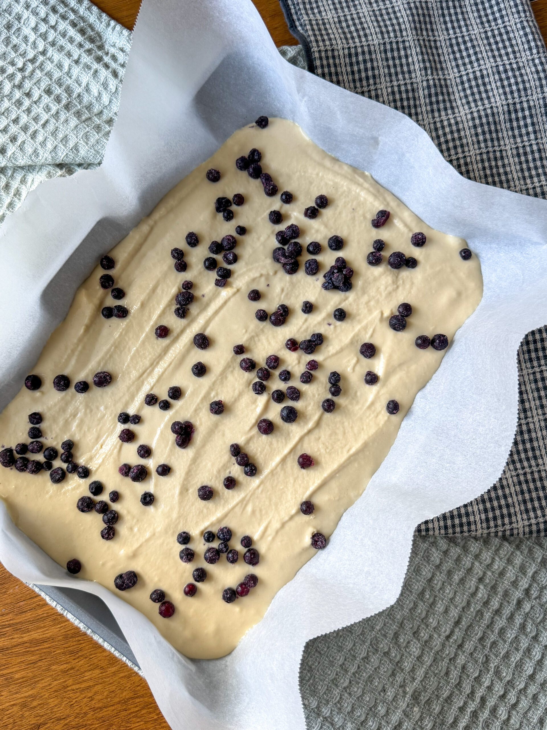 - Step 3: Spread the batter evenly into the prepared pan and add any optional toppings like berries or chocolate chips.