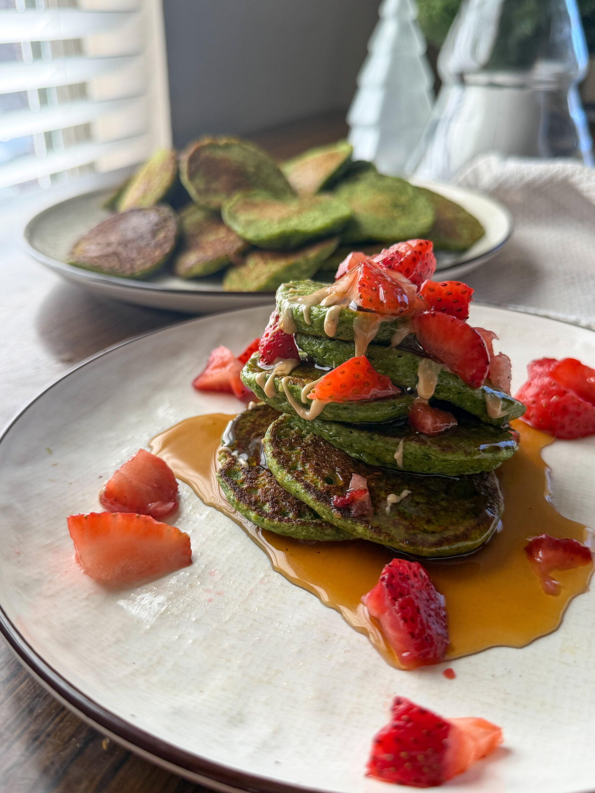 These are my favorite dishes to serve with these spinach banana pancakes: