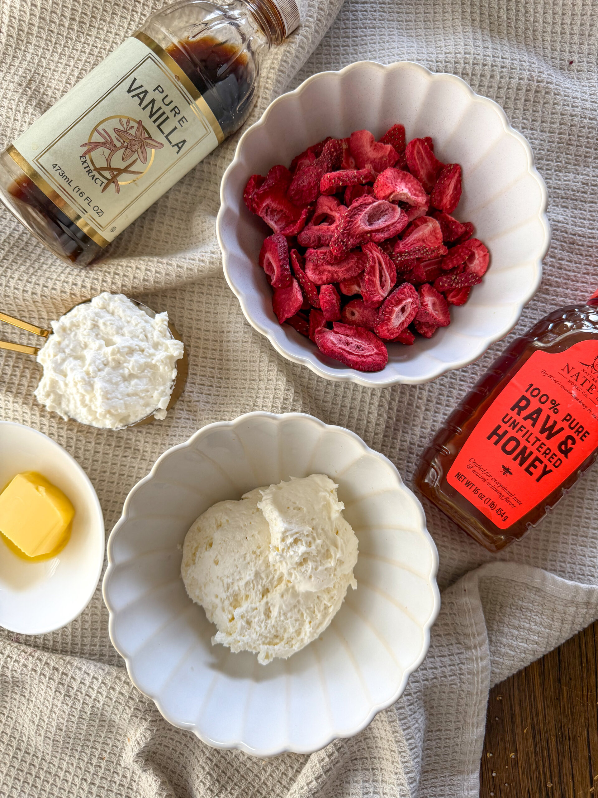 This version blends cream cheese and cottage cheese (or can sub with thick yogurt) for a creamy texture that’s a little more balanced and a little less sugar-heavy than traditional frosting. The freeze-dried strawberries add natural flavor and color, and everything comes together in minutes with an immersion blender.