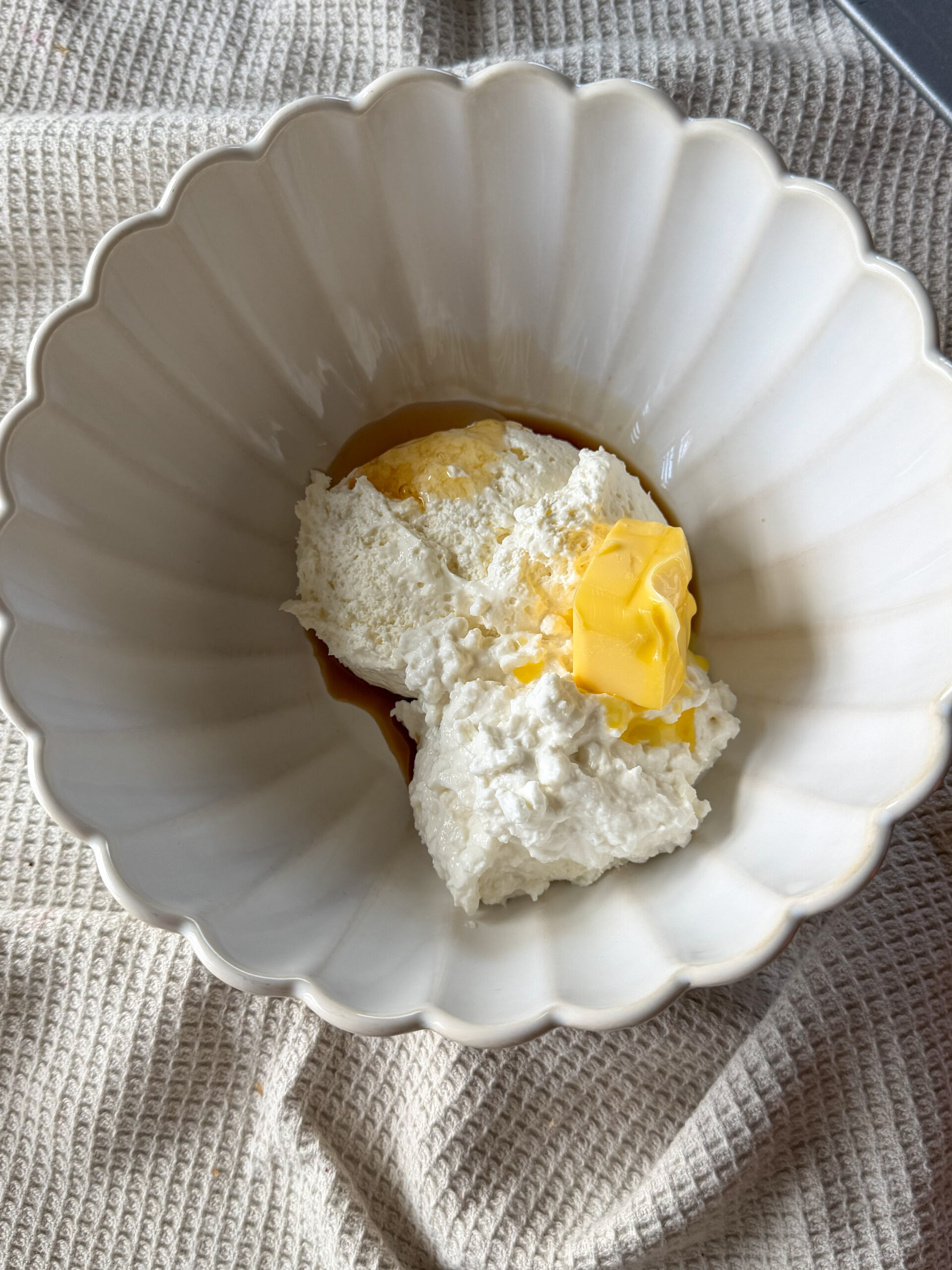 - no butter: softer, more like a thick yogurt dip (adjust by swapping cottage cheese with yogurt or adding a few splashes of milk to thin out more!)